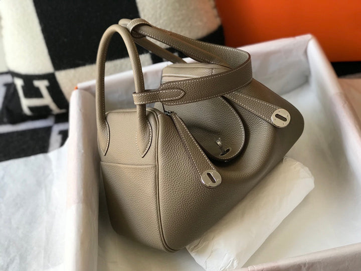 HM LINDY 30 BAG IN PEANUT BROWN CALFSKIN SILVER HARDWARE