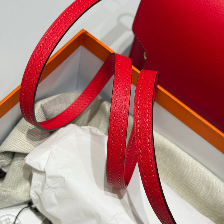 HM ROULIS 18 MINI BAG IN CARDINAL RED CALFSKIN GOLD-TONE HARDWARE