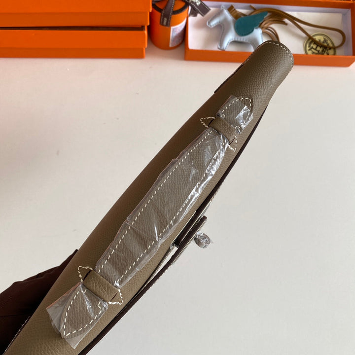 KELLY CUT 31 IN MOCHA BROWN CALFSKIN WITH SILVER HARDWARE