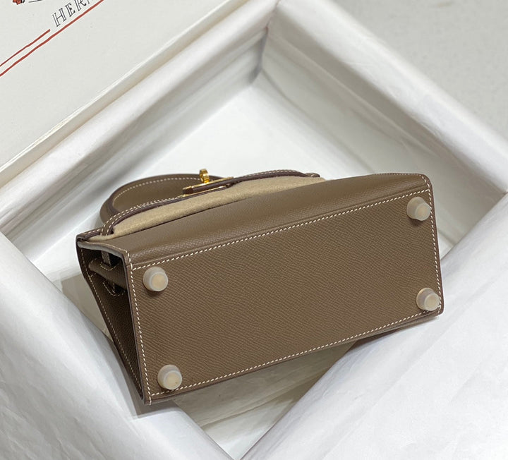 KELLY MINI 20 BAG IN MEDIUM BROWN CALFSKIN WITH GOLD HARDWARE (MADE-TO-ODER)