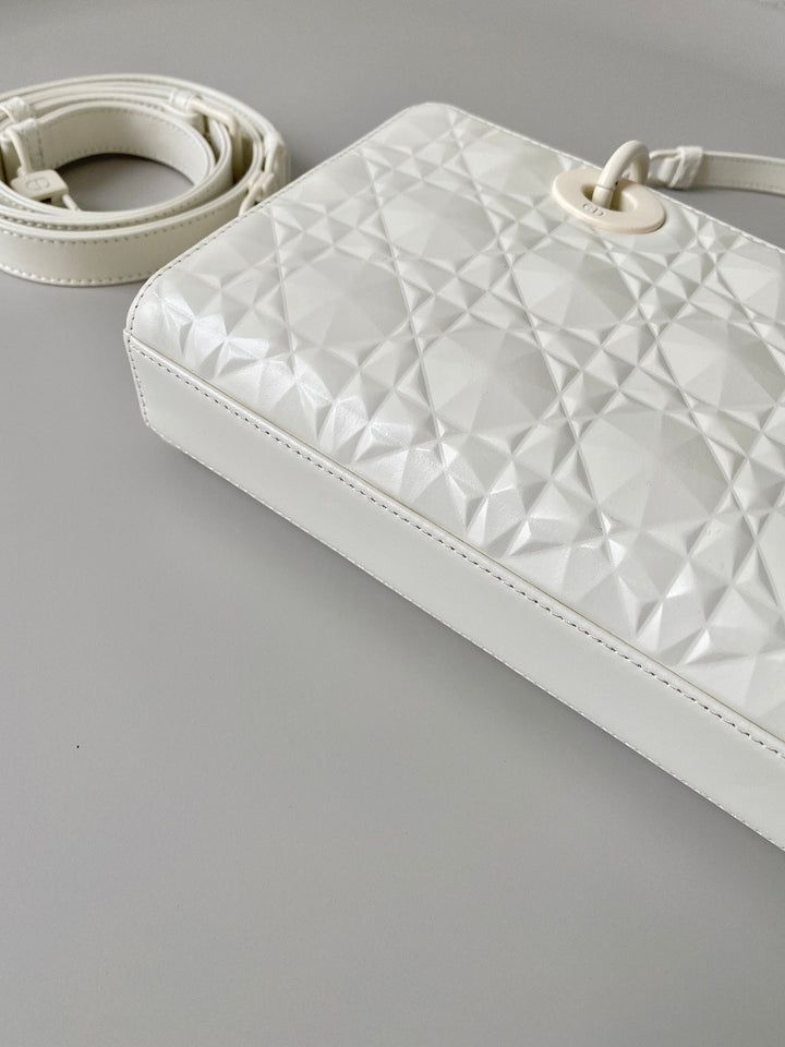 MEDIUM D-JOY BAG 26 IN WHITE CALFSKIN