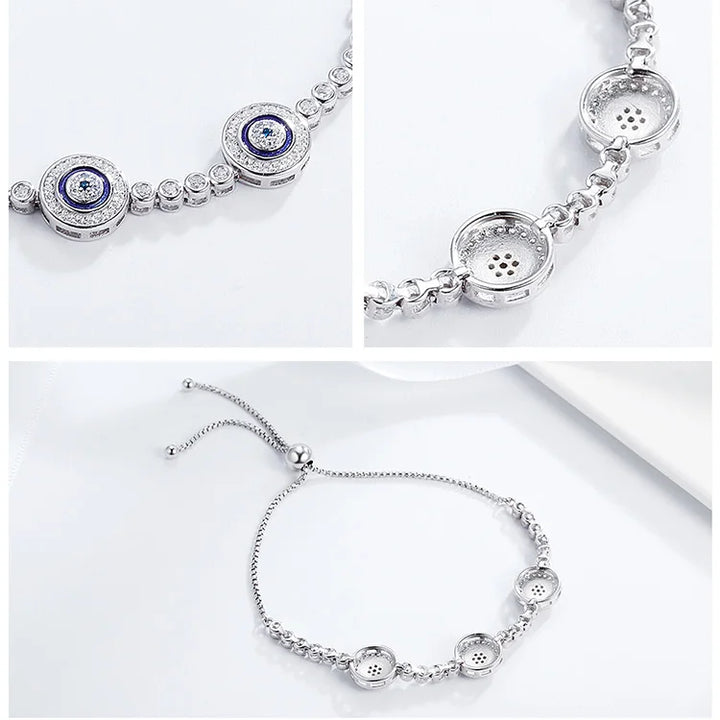 ˇFashion StreetˇSilver Luxury Round Blue Evil Eyes Clear Cubic Zircon Crystal