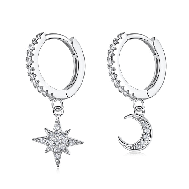 ˇFashion StreetˇStar and Moon Asymmetric Earrings